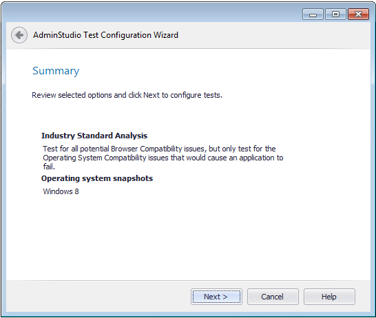 AdminStudio Test Configuration Wizard
